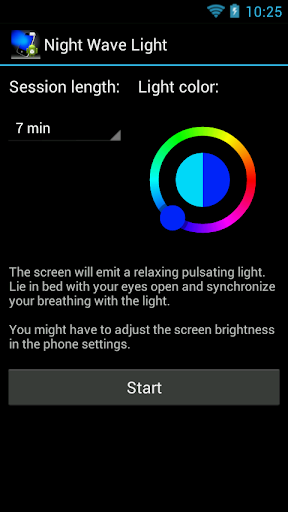 This sleeping aid app makes your device emit a gendle, relaxing light, that pulsates at the natural respiration rate. Lie in bed with your eyes open and inhale and exhale in sync with the light. The app will guide you to sleep by gendly slowing down your respiration rate. This will help you relax and fall asleep fast. After the session ends the app shuts down and you continue to sleep.