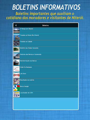 Para completar, o aplicativo informa seus usuários sobre alguns boletins do dia a dia como por exemplo o tempo de percurso na travessia da ponte ou a fila das barcas e ainda as condições das ondas nas praias. E por último, para fazer seu bolso sentir a diferença, promoções exclusivas foram selecionadas, com descontos exclusivos somente para seus usuários.