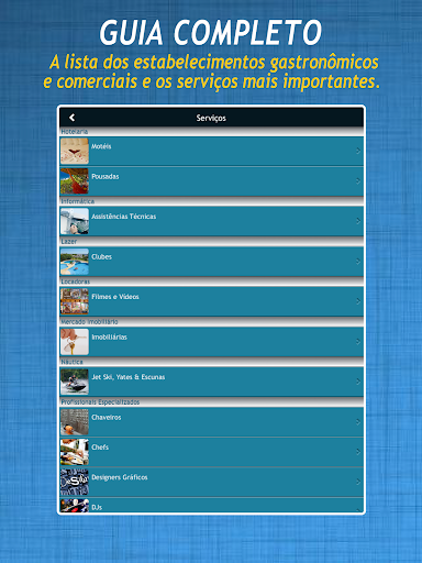 O aplicativo também explora os segmentos gastronômicos, comércio, serviços e entretenimento, listando as melhores empresas e os melhores estabelecimentos de cada setor, atuando como um guia digital indispensável para qualquer bolso.