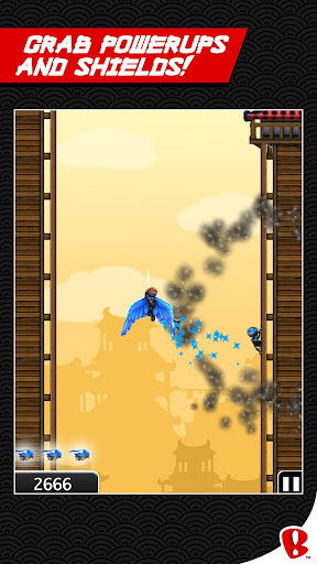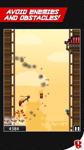 In this fast paced ninja climbing game, your goal is to rise as high as you can while avoiding killer squirrels, angry birds, enemy ninjas, throwing stars and exploding bombs. With a simple tap you can jump from one wall to the other, knocking obstacles from the air as you do. Take down three enemies of the same kind to trigger mega-jump bonuses. Collect shields to plow through your opponents with. Just watch out for ledges and other ninjas because they will knock you off and send you to your doom!