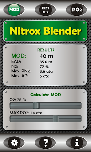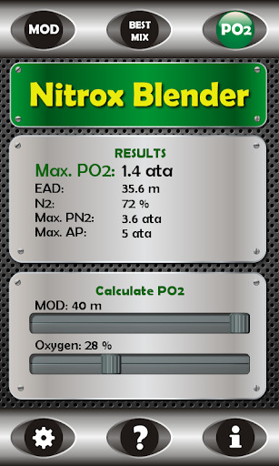 • Input MOD and O2% to calculate PO2