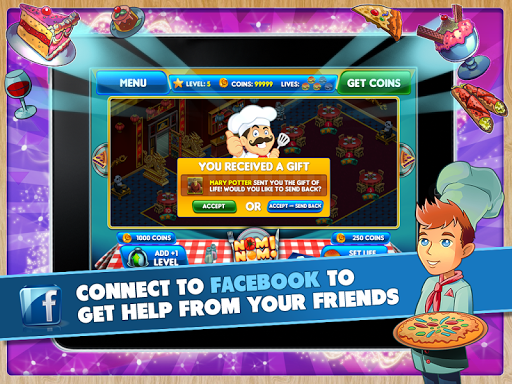 In NomNom!, you must serve hungry customers in 10 themed restaurants by tapping,