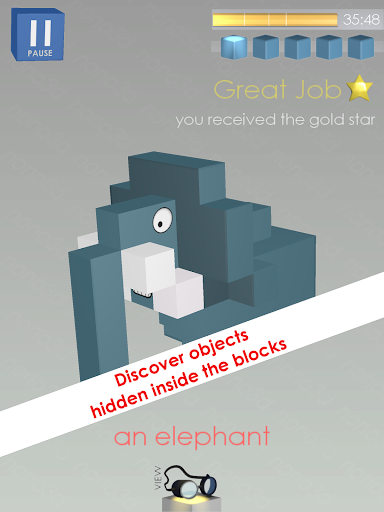 Starting with a grid of boxes, you have to find out which boxes to destroy in order to reveal the object hidden inside.