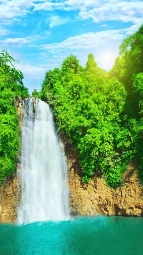 A beautiful Natural Water Falls looks great on the screen, a real natural water falls with waving effect, and water mirror effect at the bottom of the screen with and with beautiful green background and in free version it is ad supported and may contain ads in the notification tray and or home screen and you can delete shortcuts easily without any effect. It can be moveable external SD CARD