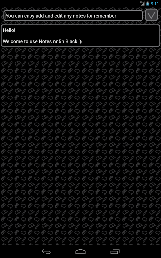 Easy, simple, quick, fast text notes with black interface on your Android device.