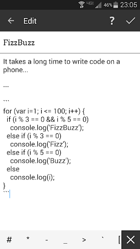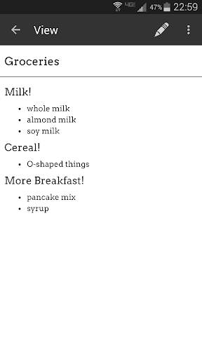 - Quickly and easily write simple lists, class notes, short stories, code documentation and more in Markdown.