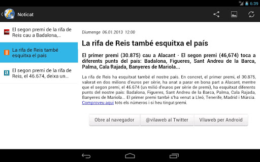 A cada article hi ha enllaços a la versió web, Twitter del diari i aplicació si n'hi ha. N'aniré afegint a mesura que sigui possible. Podeu enviar peticions d'afegir/treure/mostrar només un paràgraf de diaris a jocc (punt) android (ensaïmada) gmail (punt) com.