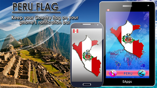 Noticon Flags: Peru App is Easy to use, with the press of a single button your phone will always have your Peru Country Flag noticon displaying your countires flag on the top of your phone in its notification bar.
