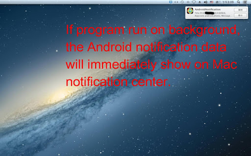 Android Notification Provider let your android device system notification message immediate show on Mac.