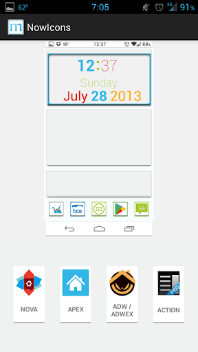 You must have a home replacement such as ADW, NOVA, APEX, ACTION LAUNCHER, and HOLO Launchers for this theme to work correctly. To apply the theme in your specific launcher: