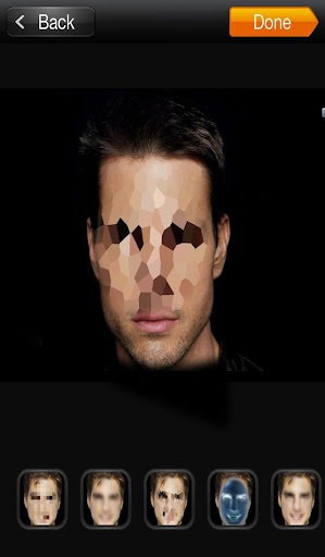 Take or load a picture. Add as many censor points as you need, adjust positions and sizes and you will see them hiding the photo. Really easy and effective.