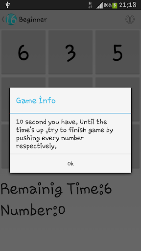 You have 10 seconds and 9 numbers to finish the game.