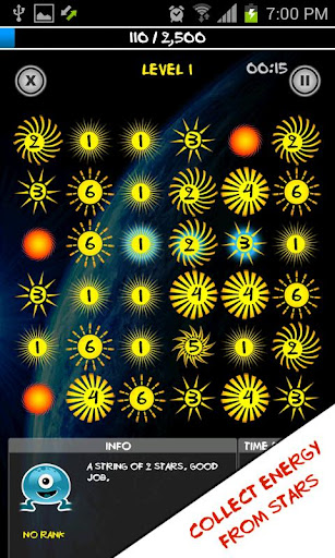 Number Paradox is a great new number game for Android. You are in command of the Star Making Machine. Your job is to gather energy for a future alien race. Number Paradox transcends time allowing you to receive deliveries of stars from your future self. Don't forget to send the same stars back in time later in the game though, or you may just create a time paradox and destroy the universe.