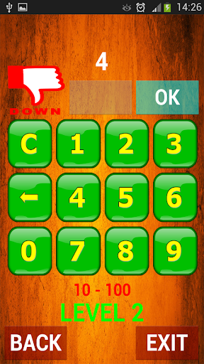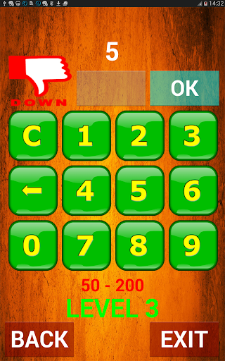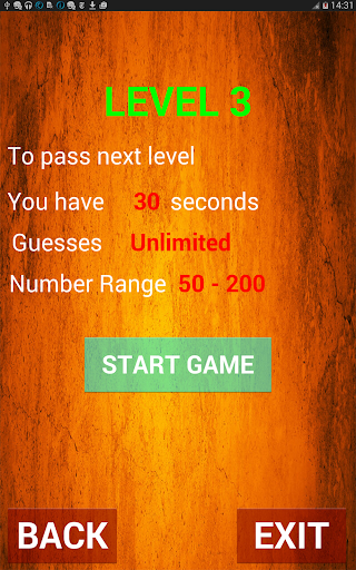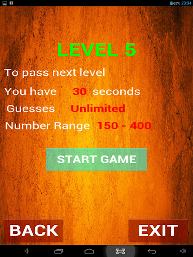 Our game has 20 levels. You need to find correct number at the time given to you. You will have chance to pass next level when you find the correct number. The game will help you by directing you up or down when you guess number.