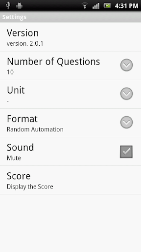 Please go to settings and set number of questions , unit , format and mute.