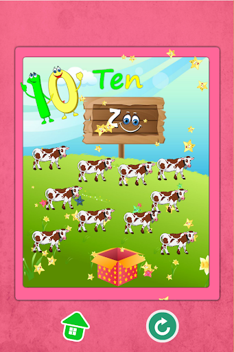 Parents can install this kid education app both to educate their children and to have a nice time with them. There are 2 categories: Read,Count. Read category is appropriate to toddlers (1-3 year kids) All the numbers, 0 to 10, are indicated. You can listen each numbers and see them with lovely objects like animals.