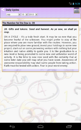 Numerology offers a variety of uses beyond typical name and birthday interpretations. For example, you may wish to learn more about a house number, license plate, company name, even a simple word or phrase. In addition, no study of Numerology is complete without an examination of cycles. Each day presents a new numerological flavor, while the first of each month starts everyone on a new monthly cycle. Also, every year on your birthday, a new numerological cycle begins.