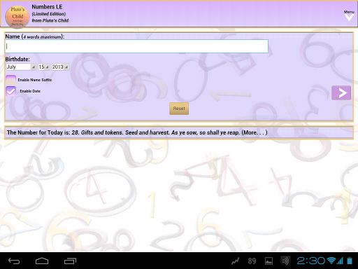 To use this app, simply enter a name or phrase and birthday and tap the button to read the report.