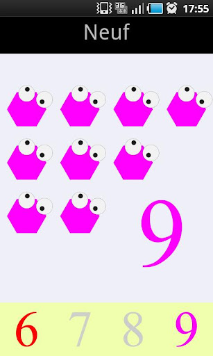 - Select one of them. On top of screen will appear the name of number and in the middle will appear a colorful image with the selected number.