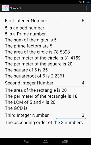example to find the area and perimeter of triangle, circle, square or rectangle.