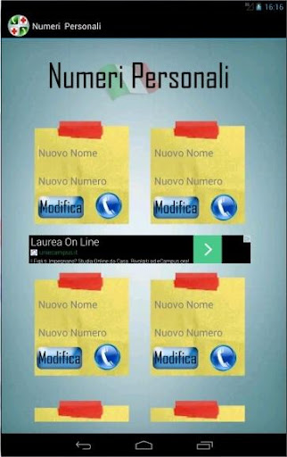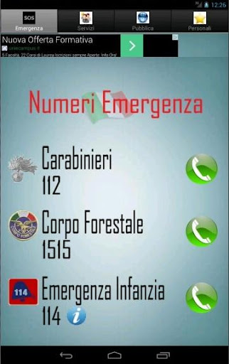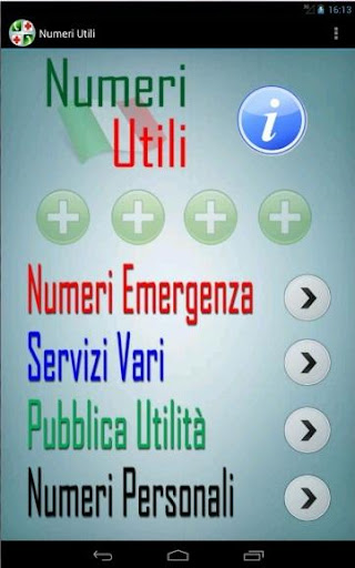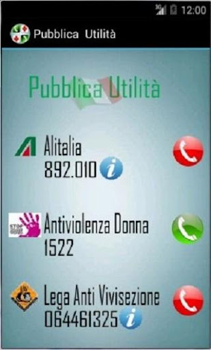 Numeri Utili ti consente di avere a portata di click la maggior parte dei numeri Nazionali Italiani raggruppati per sezione: Numeri di Emergenza, Pubblica Utilità, Servizi Vari che contiene i numeri delle Carte di Credito in caso di furto/smarrimento, e i Numeri Personali (10 numeri da memorizzare a piacimento). Basta poi cliccare sul simbolo della cornetta telefonica e chiamare.