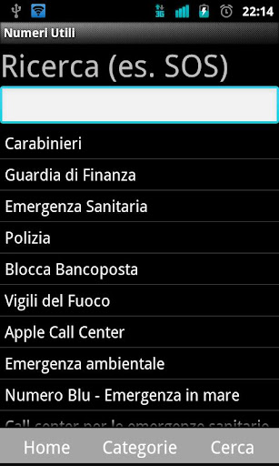 I numeri sono suddivisi per Categorie e Sottocategorie, possibilità di far partire la chiamata direttamente dall'applicazione.