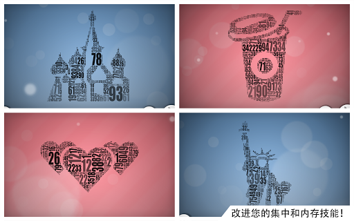 看看一组数字后面隐藏了什么!找到并加亮正确的数字直至它们形成一幅独特的图像。挑战并提高您的注意力、数学和记忆能力!在 Facebook 和 Twitter 上与您的好友分享您已经找到的图像。