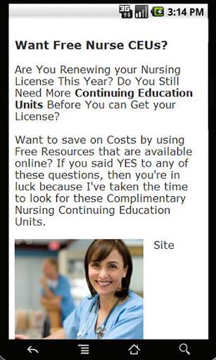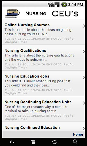 See the newest Videos and most recent high quality photos. Catch up on the latest news and information about Nursing CEU's. Everything you're looking for and updates on what you already know. If you're looking for older information or if you want to learn more about the new stuff. It's all right here in one place, "the palm of your hand". RSS news feeds and content are continuously updated in order to keep you on the leading edge of the newest Nursing Educational Information . This app also contains news feeds for NURSING JOBS and pay rates. Enjoy up to date examples and stories in the ever changing work place. All this and much more all in one app and it is FREE!
