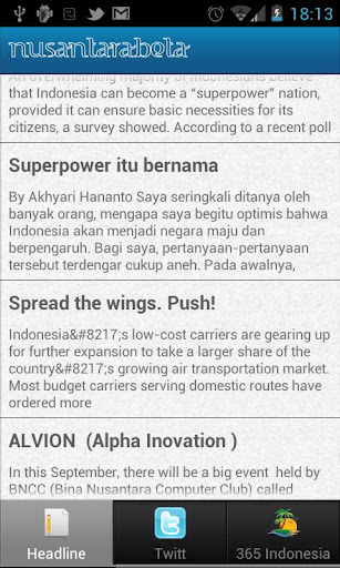 Nusantara Beta adalah aplikasi berbasis mobile yang dikembangkan dengan semangat idealisme dedikasi para pemuda untuk bangsanya yang ingin mengenalkan segala keindahan Indonesia. Aplikasi ini sepenuhnya didedikasikan untuk mendukung program kampanye kunjungan wisatawan Nasional atau Internasional dan untuk mengenalkan segala kelebihan yang dimiliki Indonesia, serta hadir sebagai salah satu alternative solusi media yang mampu memudahkan wisatawan untuk menjelajahi dan mengenal Indonesia.