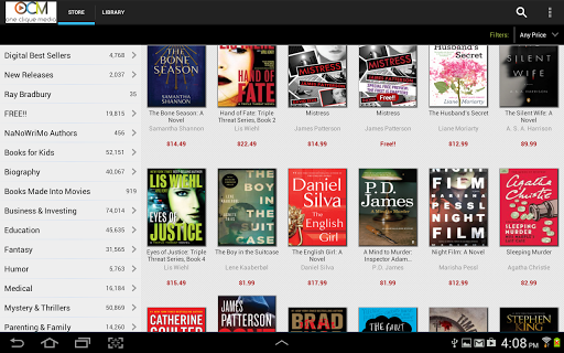 Browse and search bestsellers, new releases, lists, popular authors and categories. Access your cloud-based library wherever you go including your computer or compatible e-reader.