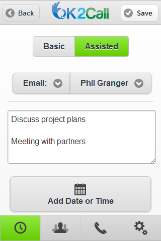 OK2Call allows users to make notes associated to a contact so that when users make a scheduled call or receive a call from a contact they have a prompt about everything you wanted to discuss.