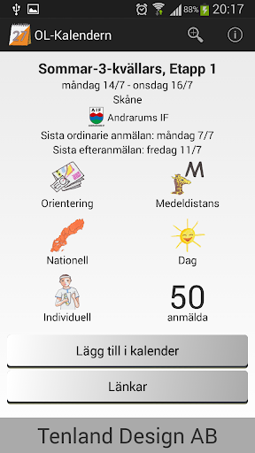 Det är även möjligt att lägga till tävlingar till telefonens egna kalender.