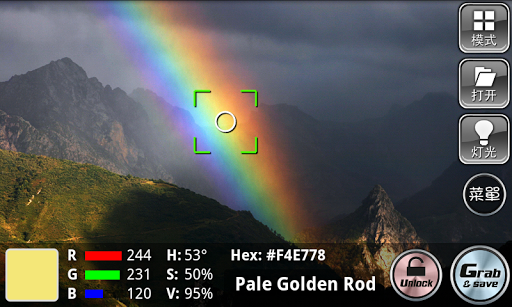 您可以選擇拍下照片或在實時攝像情況下探測顏色。您也可以從相冊裡打開圖像以檢測圖像上的顏色。