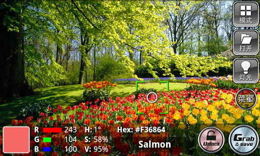 ★ 顏色信息顯示:RGB,HSV,十六進制代碼,顏色樣本,顏色名稱