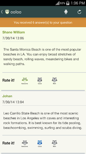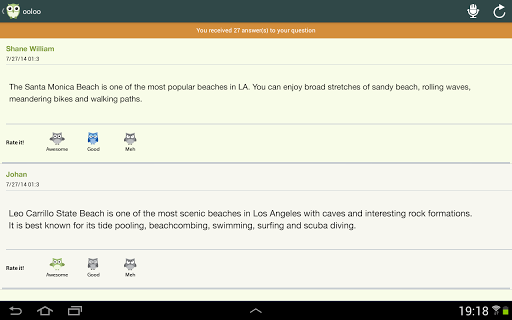 Tired of trying to explain to a computer program what you're searching for? Sick of getting answers that have nothing to do with what you need? Computerized voice-search apps can't always understand what you want to know, but OOLOO brings a personalized approach with a human connection, staffed with real people 24/7. Every time you ask OOLOO something, our dedicated answer team is ready to help you find what you need! Whether you want to know which restaurants close to you are offering happy hour, or need some suggestions for vegetarian recipes, just pick up your phone and ask OOLOO. OOLOO is making search human.