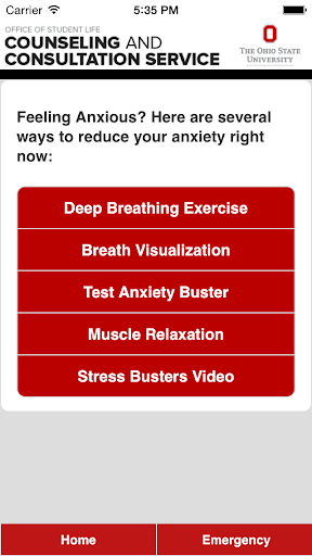 The CCS App offers easy-to-use multimedia strategies to feel better fast! Taken from positive psychology and mindfulness skills, the app connects you to usable tools that help promote wellness, balance, and calm. From breathing exercises, guided imagery for test anxiety, and a musical playlist to cheer you up, these skills connect you with in-the-moment ways to reduce anxiety, stave off depression, and hack into happiness! It provides a variety of ways to access our services, information on additional mental health resources on campus, and emergency contact information at your fingertips.