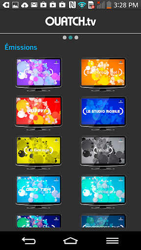 L'appli OUATCH TV sous Android permet de regarder l'antenne en direct, d'accéder aux rediffusions de toutes les émissions, aux news publiées sur le site, et de partager tous ces contenus via Facebook et Twitter, tout en interagissant avec les présentateurs et invités des émissions diffusées en direct.