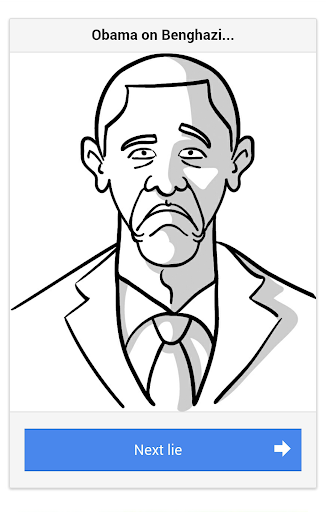 A fun app that showcases Obama's lies over the last few years. Includes audio clips of some of Obama's biggest whoppers with amusing drawings shown for each clip. Hear favorites such as Politifact.com's lie of the year - "If you like your plan, you can keep it." This ad-supported app will be updated regularly to keep up with the liar-in-chief's lies. Boy, have we got our work cut out for us!