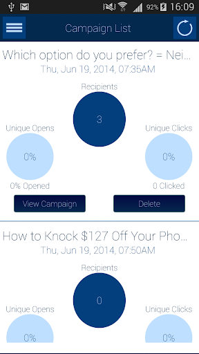 1) Campaign list- View all your campaigns in a list and delete them in one go.