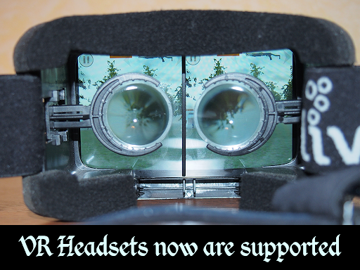 • VR Headsets support - Durovis Dive, Google Cardboard, ImmersiON-VRelia GO and similar [experemental]