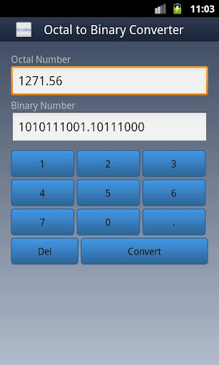 This app converts numbers from octal to binary system. The app can covert both Integers(Eg:165) as well as floats (Eg:154.64).