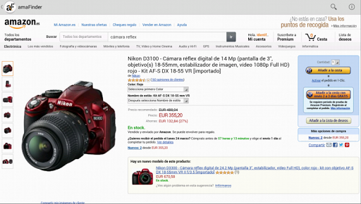 La aplicación por ahora está preparada para buscar en Amazon.es, Amazon.co.uk, Amazon.it, Amazon.fr y Amazon.de.