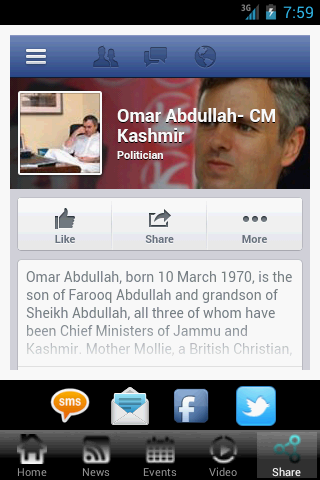 Occupying and sharing space that is usually held by senior politicians and leaders, Mr. Abdullah reflects the aspirations, hopes and yearnings of a young, vibrant and dynamic India and the State of Jammu and Kashmir. His youthful vigour and intuition, inspiring leadership and dynamism, are a picture-perfect reflection of the new India.