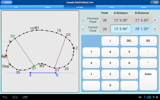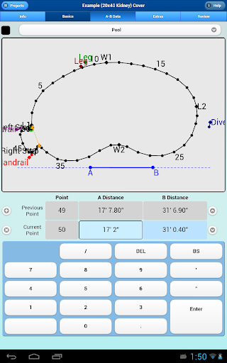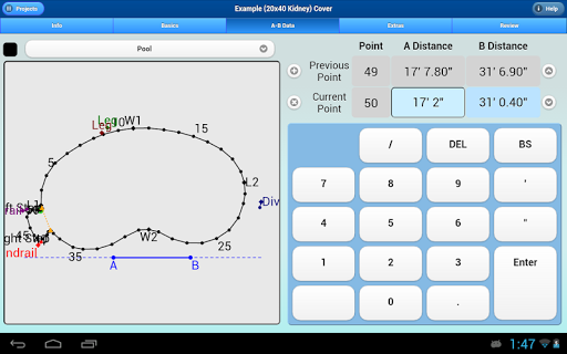 Measuring for replacement liners and safety covers made easy. On Point accepts A-B triangulation data for its measurements. Simply measure, entire points into the On Point App, select the material and submit for quote or order.