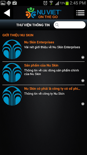 Ứng dụng hỗ trợ Network Marketing và kinh doanh Nu Skin đầu tiên và duy nhất trên thế giới (cho đến tháng 01/2014) dành riêng cho các Nhà Phân Phối thuộc đội nhóm Nu Việt. Ứng dụng cung cấp các thông tin chi tiết về công ty Nu Skin, hướng dẫn sử dụng sản phẩm, tính ưu việt của công nghệ ageLOC, cơ hội kinh doanh với Nu Skin, cách xây dựng mạng lưới phân phối,…