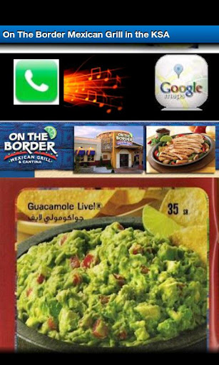 This is the "On The Border Mexican Grill & Cantina" Android Application in the city of Jeddah, Kingdom of Saudi Arabia. The application features Google Maps locator, Menu, Phone, and of course a popular latin tune to set the mood.