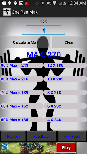 This app will give you an accurate estimate of your 1 rep max You can use it to compare your weekly progress-even if you're working different rep ranges. Use this app to check the progress you've made after each workout for total optimization!
