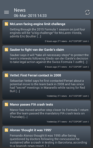 This App is unofficial and is not associated in any way with the Formula One group of companies. F1, FORMULA ONE, FORMULA 1, FIA FORMULA ONE WORLD CHAMPIONSHIP, GRAND PRIX, FORMULA ONE PADDOCK CLUB, PADDOCK CLUB and related marks are trade marks of Formula One Licensing B.V.