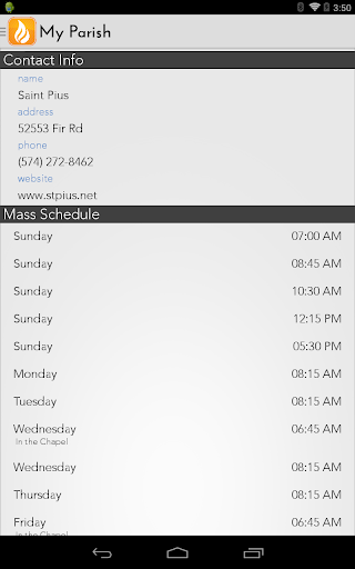 - Mass Time Finder: Map system that will guide you to Catholic parishes around the world in order to find Mass/confession/adoration times while you are on the road.