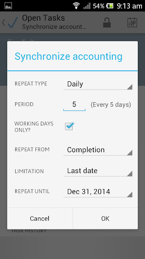 - Daily, weekly, monthly or yearly recurring with customizable intervals